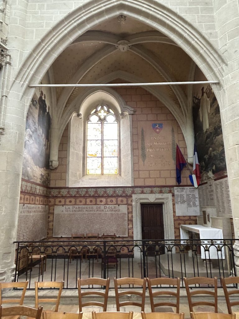 At least part of this imposing church can be seen from just about any point in the town but it is the view from the Avenue de Lair, on the south side of the river, which most appeals. Inside it is stunning. It houses several small chapels, the Sainte Chapelle du Miracle de Faverney being the one which attracts most attention. This renaissance style chapel serves to house a relic that was miraculously saved from a fire at Faverney Abbey. However, to my mind, two other chapels are worthy of special mention – one dedicated to France’s fallen in WWI and another to recognise the surprisingly large number of church officials in Jura who were guillotined during the French Revolution.