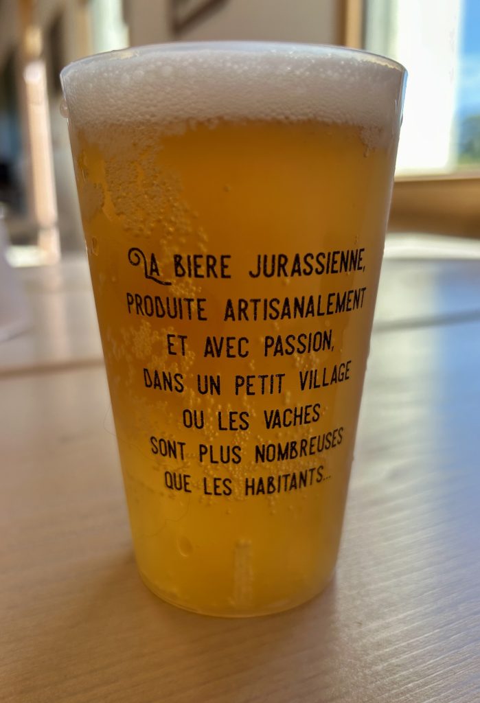 The staff proved attentive and well informed regarding the cheese and the menu offered plenty of choice. In addition to a selection of Comte cheese of varying ages) there was Morbier, Bleu de Gex, Raclette, Tomme and others. To accompany the cheese there was also a range of cold meats from Jura (dry cured ham, sausages and terrines) and a selection of locally produced craft beers. Oh and, of course, yellow wine. Yellow wine and Comte is a marriage made in heaven.