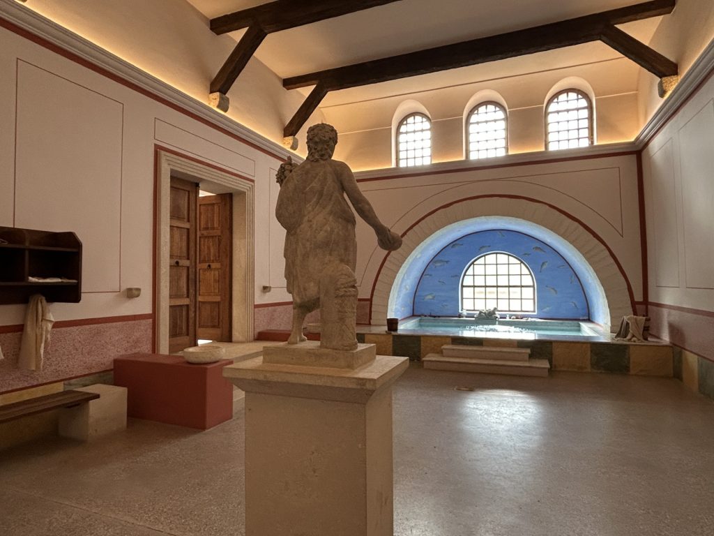 Without any doubt, the building complex which most impresses is the meticulously restored Public Baths. It is truly spectacular comprising three different baths (fridarium, tepidarium and caldarium) and all appropriate ante-rooms but; and this is the most amazing point, they are all fully functionel with the water supply and underfloor heating functions having been restored as per the original Roman technology of 2,000 years ago.