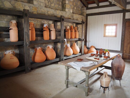 Several different properties in the ‘City Quarter’ have already been either entirely or partially restored. These include an Oil Merchant’s house and his adjoining business premises; the city palace or stately home of an upper class citizen (Villa Urbana); a middle class citizen’s house (the House of Lucius) and; most impressive of all, a Roman Public Baths complex which is fully functional. Anyone interested in Roman history will find the ‘City Quarter’ wholly captivating. It blew Vanya and I away. The site is good value too. I think we paid about 15 Euros a head entrance fee.