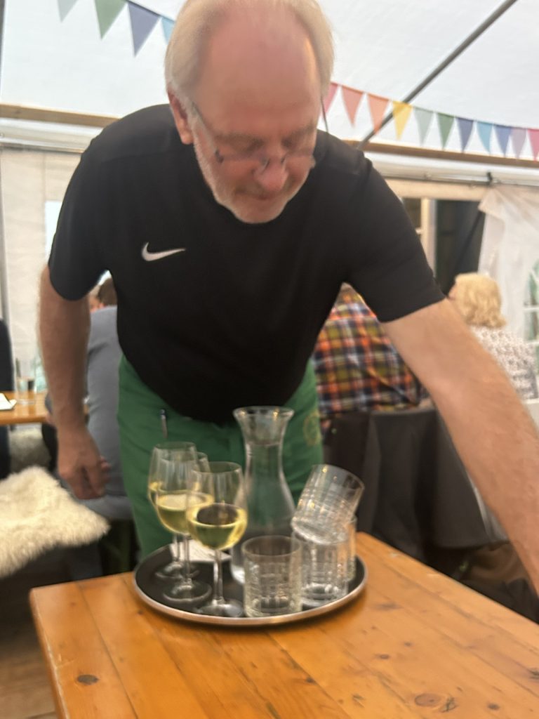 Arriving late in the evening and not having reserved a table, we weren’t at all confident of getting a table but; the manager seemed more sympathetic to our request after seeing Nala in her wheels and he found us a table (the last one) in the party tent adjoining the heurige bar.