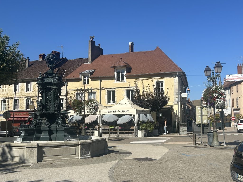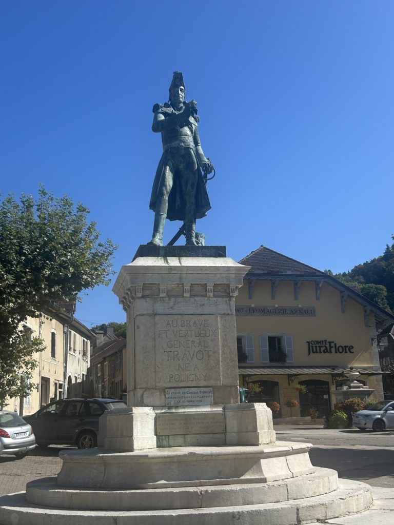The tourist information office is in the town’s main square, the Place Des Deportes; where the Grande Rue , the Route de Geneve and Rue Travot all converge. It’s not a particularly large square but, with it’s lively restaurant-bars, boutique shops and farmer’s market on Mondays and Fridays, it lays claim to being the beating heart of the town. The square is conspicuous by a large fountain towards one end and a statue of the town’s most famous son, General Jean Pierre Travot, at the other end.